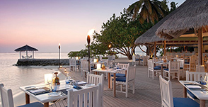 Ресторан Cafe Huraa представляет блюда азиатской и европейской кухонь, тематические ужины, а также изысканные вина из собственного винного погреба отеля.