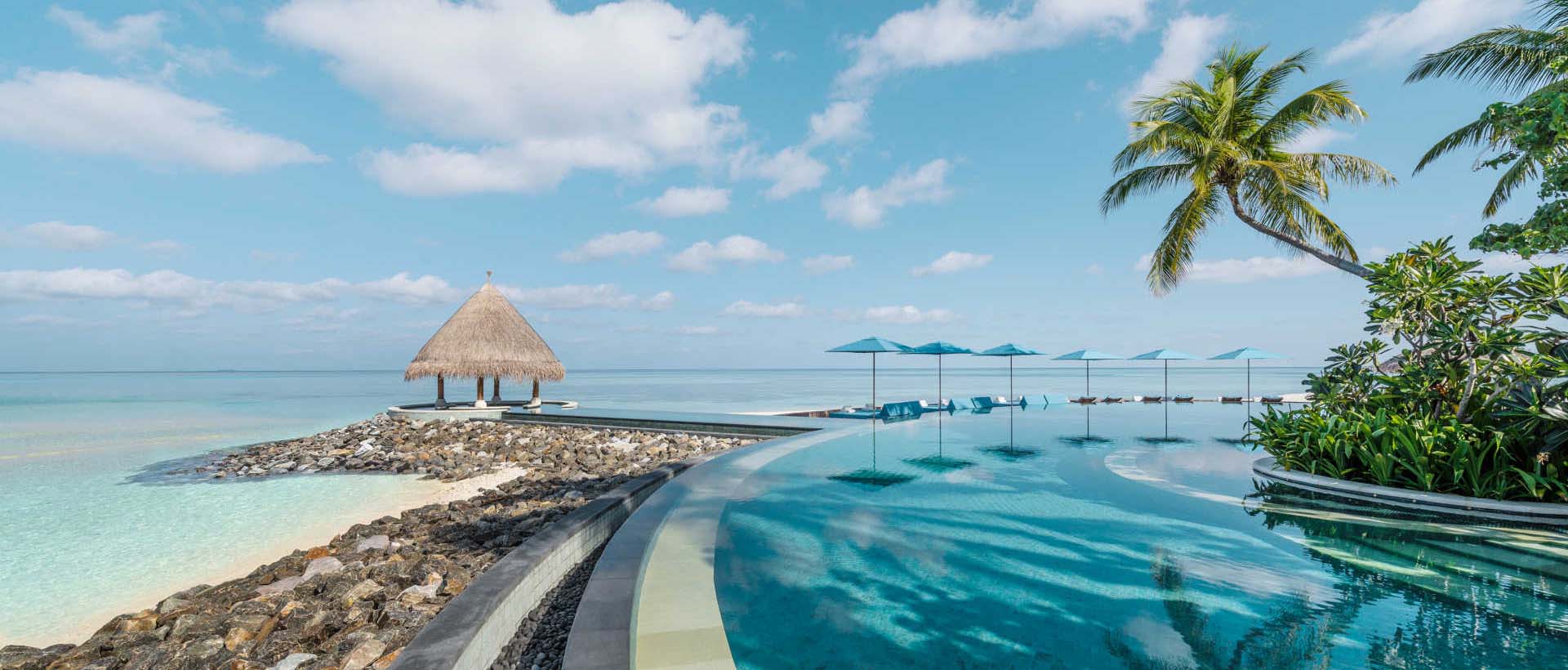 Водная вилла с тремя спальнями (2 с кроватью king-size и 1 с кроватями twin), обеденной зоной на открытом воздухе, частным бассейном на террасе и прямым спуском в воду. При размещении с детьми до 8 лет родители должны подписать специальный документ (Liability Form).